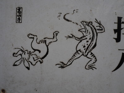 「鳥獣戯画」は「鳥獣人物戯画(ちょうじゅうじんぶつぎが)」とも言われる、京都市右京区の高山寺に伝わる紙本墨画の国宝絵巻物です。甲・乙・丙・丁と呼ばれる全4巻から構成されています。