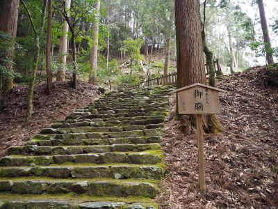御廟を右手に見て、左の細道に入ると簡素な覆いの下に