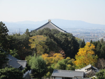 二月堂からみる法華堂(三月堂))